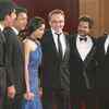 The cast of the movie 'Slumdoing Millionaire', Dev Patel, Irrfan Khan, Freida Pinto, Danny Boyle, Anil Kapoor and Madhur Mittal arrive at the 81st Academy Awards at the Kodak Theater. (AFP/Valerie Macon)