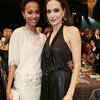 Actresses Zoe Saldana and Angelina Jolie (R) pose at the 18th annual Screen Actors Guild Awards in Los Angeles, California. (PTI/Lucy Nicholson)