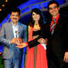 (L-R) Udit Narayan receives his trophy from Sunita and Niraj Dube during 2nd Medscape India National Awards 2013, held at Tulip Star, in Mumbai, on April 21, 2013.