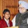 (PTI/Atul Yadav) Prime Minister Manmohan Singh with Master Lovelystar K Sohphoh during the 'Bravery Awards' ceremony in New Delhi on January 22, 2011.