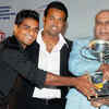 Tennis star Leander Paes and veteran footballer P K Banerjee(R) presenting the 'Best Indian Player Trophy' to soccer player Mehtab Hussain(L) during 'Indian Football Awards 2011' function in Kolkata (PTI)See more of :