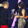 Justin Bieber accepts his award from presenter Kim Kardashian after winning best male video for 'U Smile' at the 2011 MTV Video Music Awards in Los Angeles. /awards/awards-and-honours/mtv-video-music-awards/eventshow/9779104.cms03