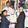 President Pranab Mukherjee presents Rajiv Gandhi Khel Ratna award to Jitu Rai at the National Sports and Adventure Awards 2016 function at Rashtrapati Bhawan in New Delhi on August 29, 2016. (PTI)See more of :