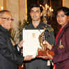 President Pranab Mukherjee honors archer Deepika Kumari with Arjuna Award 2012 during National Sports and Adventure awards at President's House in New Delhi. (BCCL/Sanjeev Rastogi) /awards/awards-and-honours/national-sports-adventure-awards/eventshow/15987943.cms04