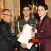 President Pranab Mukherjee honors shuttler Parupalli Kashyap with Arjuna Award 2012 during National Sports and Adventure awards at President's House in New Delhi. (BCCL/Sanjeev Rastogi)See more of :