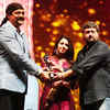 Venkat Prabhu and Premji honour Shruthi with the 'Best Supporting Actor-Female' award during the 59th Idea Filmfare Awards (South), held at the Jawaharlal Nehru indoor stadium, Chennai on July 07, 2012. (BCCL/C Suresh Kumar) /awards/filmfare-awards/59th-idea-filmfare-awards-2011south/59th-idea-filmfare-awards-2011south-kannada/eventshow/14743785.cms05