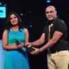 Shwetha Mohan receives the Best Singer Female award for Arike (Shyama hare) from Baba Seghal during the 60th Filmfare Awards, held at HICC, Hyderabad, on July 20, 2013.
