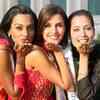 The three beauties (left to right) Reshmi Ghosh, Neha Dhupia and Shruti blow a kiss after their moment of glory. (Photo/Manoj Kesharwani)