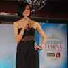 A contestant, while showcasing an elegant wear, speaks on ramp during at the Pantaloons Femina Miss India 2010 in Mumbai.
