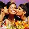 Pantaloons Femina Miss India South 2008 winner Parvathy Omanakuttam being kissed by first runnerup Shreya Dhanwantary(r) and second runnerup Kavya Bali during the finals at the HICC in Hyderabad. (Photo/Ramoorthy P) (BCCL)See more of :