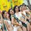 Twenty four Filipina beauty contestants for the Binibining Pilipinas 2008 (Miss Philippines) beauty pageant pose in their bikinis during a presentation to the press at a hotel in Manila on February 21, 2008. (AFP Photo/Romeo Gacad)