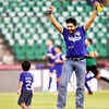 Abhishek Bachchan was seen enjoying some light moment with a kid on the field during an ISL match between Chennaiyin FC and FC Pune City in Chennai. (PTI) /celebs/bollywood/abhishek-bachchan/public-appearances/eventshow/55452017.cms02