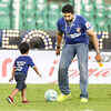 Abhishek Bachchan plays soccer with a kid during an ISL match between Chennaiyin FC and FC Pune City in Chennai. (BCCL)See more of :