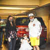 Karisma Kapoor and daddy Randhir Kapoor arrived at Taimur's birthday celebration.