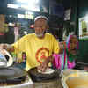 Kanta Prasad, the owner of the eatery 'Baba Ka Dhaba' attends customers.
