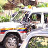 Crowd look on as Anshuman Singh Leaps from an auto on the sets of film 'Agent Vinod' at Connaught Place in Delhi.