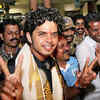 (PTI) S Sreesanth a member of World Cup winning Indian team being welcomed by his relatives and friends on his arrival at Kochi Airport on Monday, April 4, 2011.