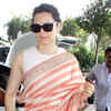 Staying true to her style, Kangana Ranaut was seen wearing a striped cotton saree.