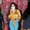 Kiara Advani upped the style quotient as she was seen wearing a satin golden top with tie-up knot detail paired with blue denim and golden peep-toes heels.