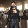 Shruti Haasan was yet again spotted at the airport flaunting a new all-black look. Clad in leather pants with a bodycon top, the actress paired it up with transparent heels.