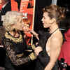 The 67-year-old actress seemed to be so taken with the 'The A-Team' star's ruffled Gucci dress that she got a little playful at the red carpet event in Beverly Hills on Tuesday and copped a feel on the 30-year-old's chest right in front of photographers.(Pic Courtesy: Getty Images)