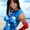 She posed topless on Surfers Paradise beach with her body painted in the Australian flag.