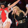 Nicki Minaj (L), Madonna and MIA (R) perform during the Bridgestone Super Bowl XLVI Halftime Show at Lucas Oil Stadium on February 5, 2012 in Indianapolis, Indiana.