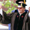 Actor Jack Nicholson acknowledges the crowd as he receives an honorary Doctor of Fine Arts degree from Brown University during its 243rd commencement exercises on May 29, 2011, in Providence, R.I.  (AP)