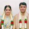 Meena with husband Vidyasagar after their wedding at Tirumala on July 12, 2009.