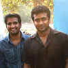 Santhanam and Suriya on the sets of Tamil movie Settai