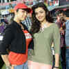 V Chamundeswaranath and Charmi Kaur during the CCL match between Telugu Warriors Vs Veer Marathi in Hyderabad.