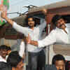 Ram Charan Teja and Praja Rajyam Party president K Chiranjeevi during the launch of the praja rail yatra in Hyderabad. (BCCL)