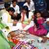 Students of S.K.Patel College of BBA, Sector 23, Gandhinagar, celebrating in their campus, where each class was given a theme to celebrate. In the pic: A class carried out a Satya Narayan puja. (Photo/Kevin Antao) (BCCL)