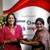 Radha Sharma from The Times of India, Ahmedabad receiving the Best Reporting UNFPA-Laadli Media Award for Gender Sensitivity 2006-07.(Photo/ Uma Kadam)