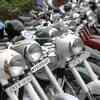 Funky 'Yezdi' bikes being parked before the race on the '7th international Jawa-Yezdi Day' organised by Bangalore Jawa Yezdi motorcycle club at Kanteerava stadium on July 12, 2009.