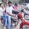 A member of the 'Bangalore Jawa Yezdi motorcycle club with his family on bike during the race to celebrate the '7th international Jawa-Yezdi Day' from Kanteerava stadium on July 12, 2009 - Photogallery