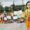 School children protest demonstration at M G Statue demanding withdrew anti children education act and stop privatization of education, in Bangalore. (BCCL/K Sunil Prasad)