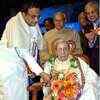 Union Finance Minister P Chidambaram with Governor Rameshwar Thakur and M B N Rao, Chairman and Managing Director of Canara Bank,felicitating 101 years old M V Venkataramaiah senior customer, at the launch of Canara Bank 's New Brand Identity (Logo) in Bangalore - Photogallery