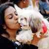 A woman displays her dog at All India Championship Dog Show organised by Mysore Kennel Club at Veterinary College Campus Hebbal in Bangalore on January 10, 2011.  (BCCL/P Muthu)