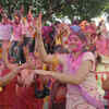 Devotees play with gulaal and dance during a procession for the immersion of Goddess Durga's idol at the end of the Navratri festival in Bangalore (PTI/Shailendra Bhojak)