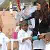 Mahendra Singh Dhoni (L) with a 7-year-old mentally challenged child along with Kannada film actress Sharmila Mandre in the annual kite flying festival organized by Rotary Club at Manekshaw parade ground. (Photo/S. Shiv Kumar)  (BCCL)