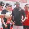 Shawn Crawford hugs Karnatka CM, BS Yeddyurappa at the 'Sunfeast World Open 10K' marathon in Bangalore - Photogallery