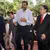Nepalese Prime Minister Pushpa Kamal Dahal 'Prachand' with Mohandas Pai (L), Director, HR Infosys Technologies at Infosys in Bangalore. (PTI Photo)