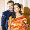 Siddharth Kannan and Neha Aggarwal pose together during their engagement ceremony, held in Bangalore.