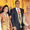 B U Apoorva, grand daughter of former Chief Minister B S Yeddyurappa and B Chandrakanth during their wedding reception at Palace grounds