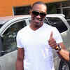 Dwayne Bravo gestures to the lens while he arrives for the press meet of Tamil movie Ula, held at Prasad Labs in Chennai. (BCCL/Johan Sathyadas)