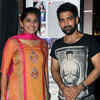 Pooja and Jeya Murthy pose for a photo during the audio launch of Tamil movie Gnana Kirukkan in Chennai. www.moviegalleri.net