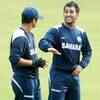 Indian cricketer Rahul Dravid (L) interacts with captain Mahendra Singh Dhoni during a training session at the M.A. Chidambaram stadium in Chennai. (Photo/B A Raju) (BCCL)