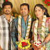 Ilayathalapathy Vijay poses with Thambi Ramaiah's daughter Viveka and Rahulji during their wedding ceremony, held in the city recently.