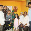 Cast members pose during the mahurat of Tamil movie 'Nirnayam'.